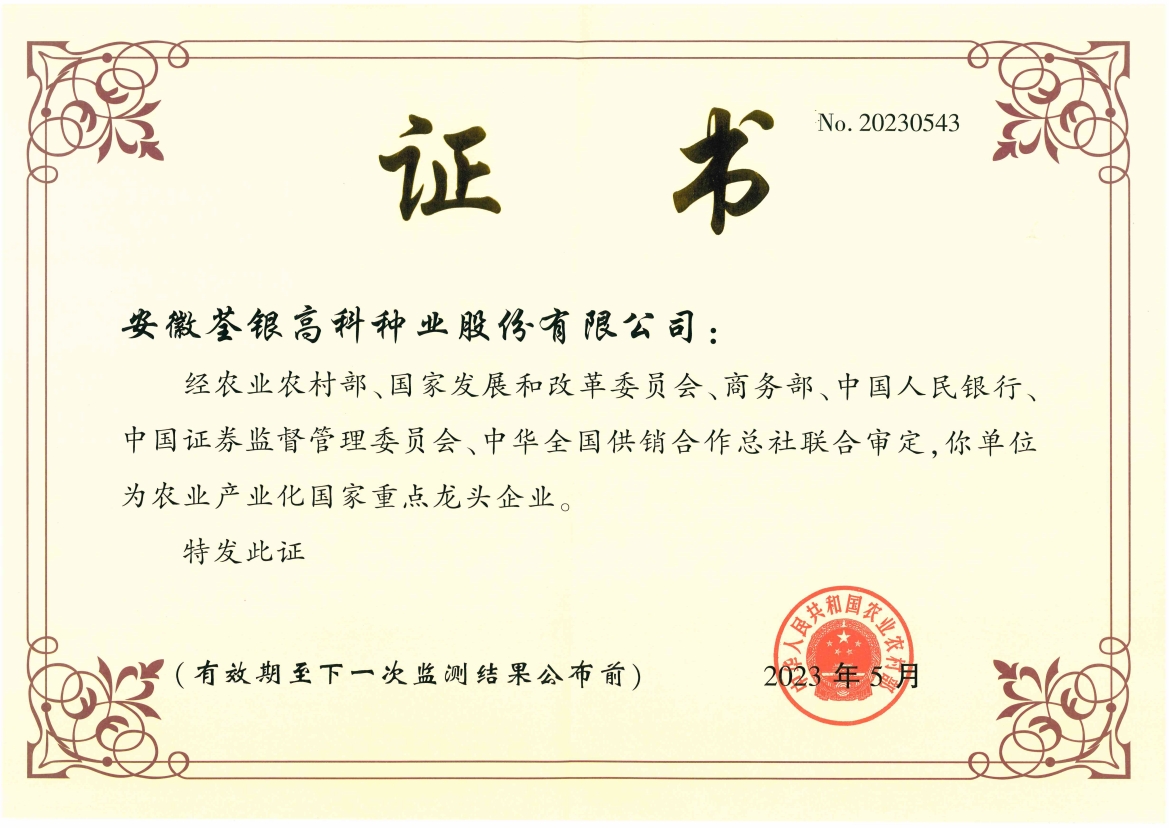 安徽荃銀高科種業(yè)股份有限公司是一家“以種業(yè)為核心、農(nóng)業(yè)服務為延伸、探索和創(chuàng)新農(nóng)業(yè)多元化發(fā)展”的現(xiàn)代高科技種業(yè)上市公司,證券代碼:300087。公司注冊資金9.47億元,系“中國種業(yè)領軍企業(yè)、農(nóng)業(yè)產(chǎn)業(yè)化國家重點龍頭企業(yè)、國家高新技術企業(yè)、農(nóng)業(yè)部首批農(nóng)作物種子育繁推一體化企業(yè)、中國種業(yè)信用明星企業(yè)"。在國內(nèi)控股子公司20多家,在國外設立分支機構4家,良種銷售至全國20多個?。ㄊ?、區(qū)),出口覆蓋20多個國家與地區(qū),種業(yè)綜合實力、雜交水稻研發(fā)、推廣及海外業(yè)務規(guī)模均居全國種子企業(yè)前2位。